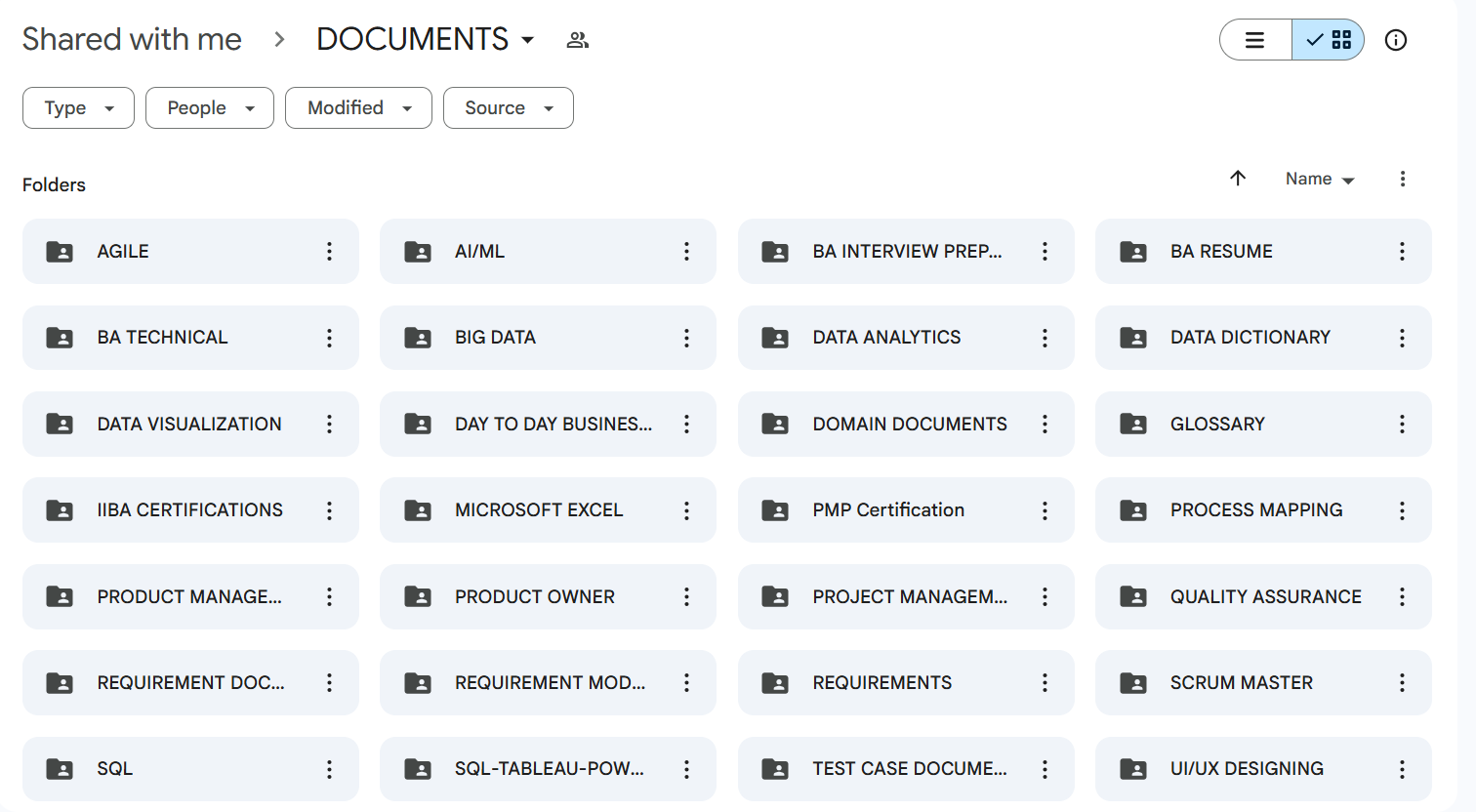 Extensive collection of Business Analysis, Data Analytics, and Project Management materials. Includes certifications, interview preparation, SQL, visualization, documentation, agile, product management, and more.