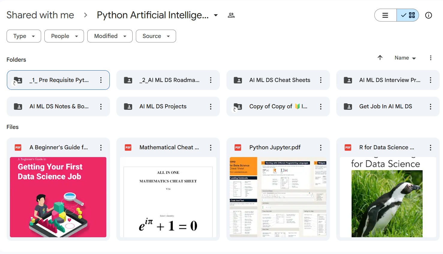Access a complete collection of Artificial Intelligence, Machine Learning, and Data Science resources. Includes roadmaps, cheat sheets, projects, books, and interview preparation material.